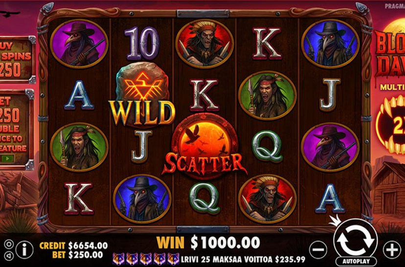 Prepare for the hunt in Bloody Dawn. Randomly during the base game, special golden symbols can land on reels 2 – 4, which transform into wilds for the next tumble if featured in a winning combination. Each consecutive tumble win also adds +1x to the win multiplier, which resets at the end of all tumbles.