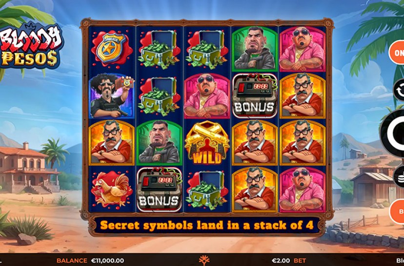 Step into the gritty underworld of Bloody Pesos by Yggdrasil, a daring online slot where fortune favours the fearless. Mystery crates hide powerful rewards, golden Wilds light the reels, and every spin tells a story of danger and desire. Dark, stylish, and thrilling — this is a high-stakes adventure packed with attitude and edge.