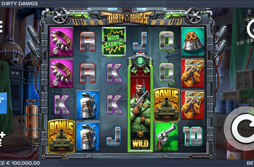 They are big, bad, and armed to the teeth. The Dirty Dawgs of Nitropolis are intimidating in both size and steel, and they don’t shy away when there is a challenge ahead. They are locked in and ready to defeat Sgt Nitro Wolf! Dirty Dawgs of Nitropolis is a 6 reel 4 row dirty slot. It comes with Nitro Wild Reels, respins, a max win coin game, a bonus game and a super bonus game – all packed into a potential of 25,000x bet.