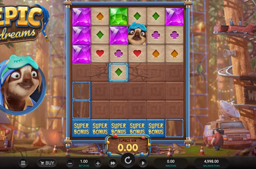 The world’s most laid-back hero is back! In Epic Dreams, the sloth from Sloth Tumble returns with a goldmine of new features. Climb 50 levels for wins up to 5,000× by collecting coins and matching symbols. Trigger the Super Build or Super Dig Bonuses, or unlock Free Spins to rise sky-high—or dig deep for hidden gems. Where will your sloth-venture take you?