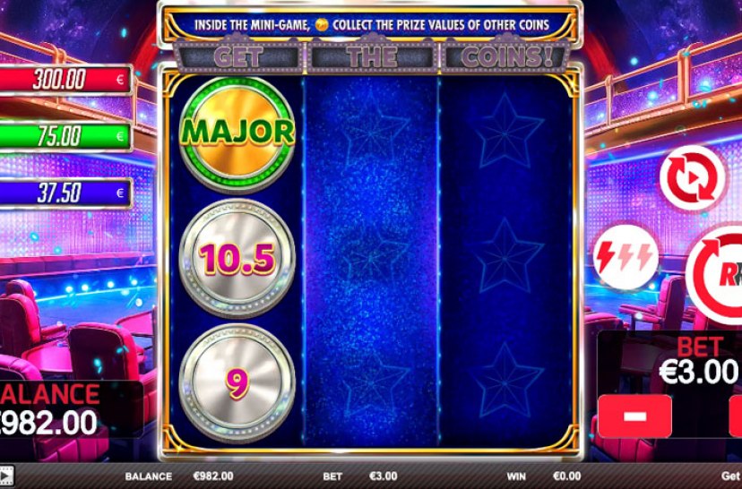Coins and prizes everywhere! Land 1 or more coins on each reel to trigger the "GET THE COINS!" mini-game and win big rewards.