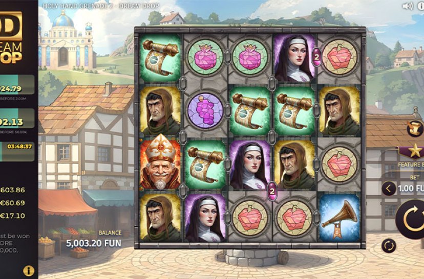 Prepare for divine demolition in Holy Hand Grenade 2 by Relax Gaming. The explosive pastor returns with an urban crusade that amplifies everything fans loved about the original. This sequel introduces three all-new Free Spins features, refined gameplay, and intensified chaos. With over-the-top action, righteous humour and booming bonuses, this fiery follow-up delivers salvation through pure explosive spectacle.