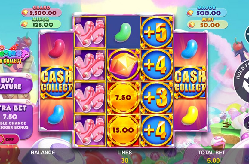 Step into The Sweetest: Cash Collect™, a sugary slot full of juicy gummy bears and fluffy cotton candy. Collect Cash Collect™ symbols to gather coins, trigger Free Games with locked symbols, and watch Cash Spreader and Diamond coins award Mini, Minor, Major, or Grand prizes for sweet, rewarding spins.
