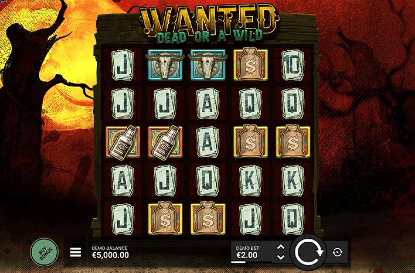 Step into our rough Western themed game filled with merciless outlaws, deadly duels and legendary robberies. Wanted Dead or a Wild is an action packed 5 x 5 grid slot featuring a max win of up to 12,500x!