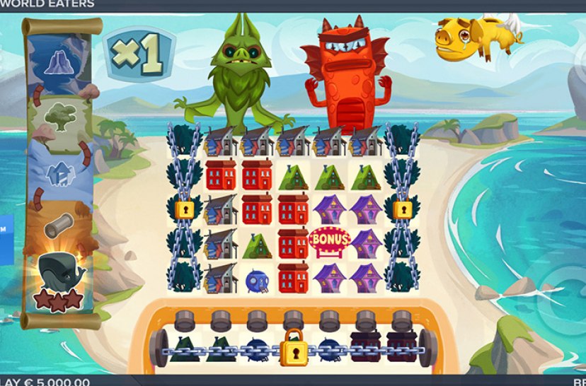 Colossal monsters emerge from the unknown, devouring cities like midnight snacks. Buildings crumble as each world becomes their glittering buffet. When they’re done with one world, they lick their claws, arguing over who gets the next bite! World Eaters is a 5 column, 5 row state-based munching slot that comes with world evolution, expanding game grid, coin wins, multiplier wilds, a bonus and a super bonus, all packed i...