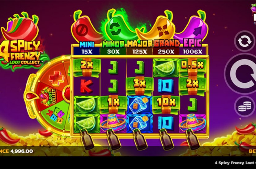 Turn up the heat in 4 Spicy Frenzy Loot Collect™, where fiery chillies ignite the reels with blazing action. Packed with hot features, jackpot-driven madness, and Free Spins that raise the temperature, every spin delivers sizzling excitement. A bold slot experience where spice, speed, and rewards collide.